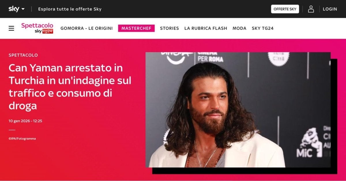 Sky TG24’ün haberinde, Can Yaman’ın popülerliğine ve kariyerine odaklanıyor. Türkiye’de uyuşturucu soruşturması kapsamında tutuklanan Yaman’ın, İtalya’da Sandokan üzerine yeni bir TV dizisinde başrol oynadığını aktarıyor.
